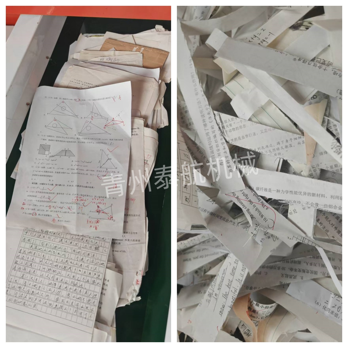 廢舊試卷紙切條效果對比圖